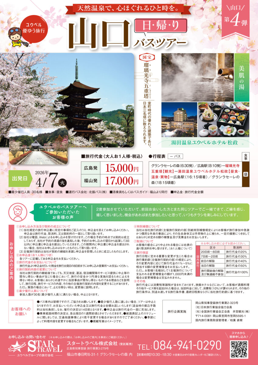 春の山口日帰りバスツアー